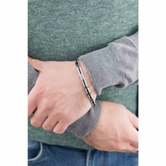 __Bracciale Stahl mit schwarzen PVD und Gelenken neri__bracciale Stahl, schwarz PVD und spinelli neri kombiniert mit Geschmack und Liebe zum Detail. Die Verarbeitung von Stahl macht die Sammlung unverwechselbar, einzigartig und particolare._