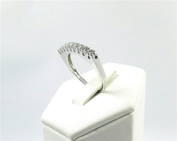 Ring woman RAIMA in White Gold 18 kt (750 ‰) and diamonds. Ring rivière pattern in White Gold 18 kt (750 ‰) consisting of a row of 9 luminous brilliant round cut diamonds for a total of 0.31 ct, H color, VS purity. Made in Italy.