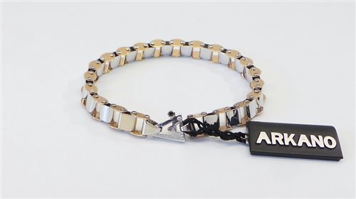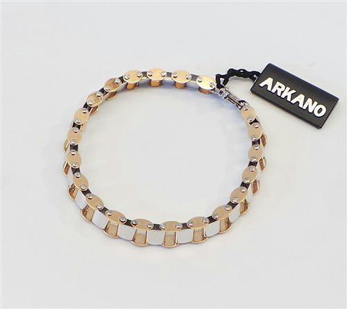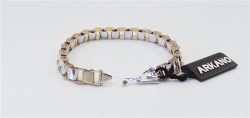 Bracelet en or 750k en or blanc et rose brillant. Il se compose d'éléments articulés qui rappellent la chaîne de cardan. Longueur 21 cm. Largeur 8 mm. Épaisseur 5 mm. Fermeture brevetée brevetée. Poids 21 grammes. Certificat d'authenticité et de garantie.