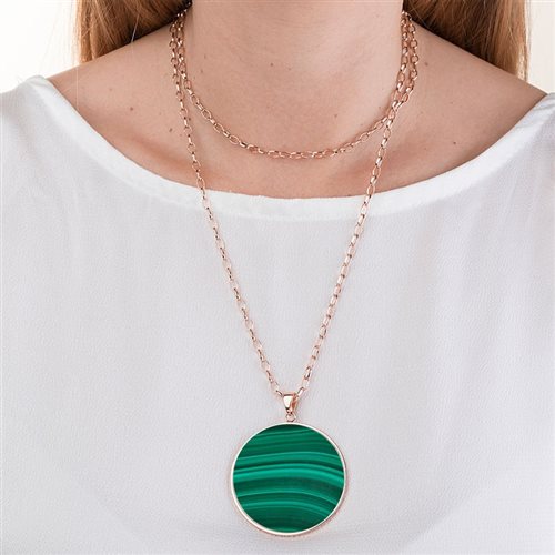 COLLANA BRONZALLURE IN BRONZO PLACATO ORO 18 KT STUPENDA COLLANA CON PENDENTE IN NATURALE MALACHITE LUNGHEZZA CM 95 PIU PENDENTE DA CM 4.00 DI DIAMETRO