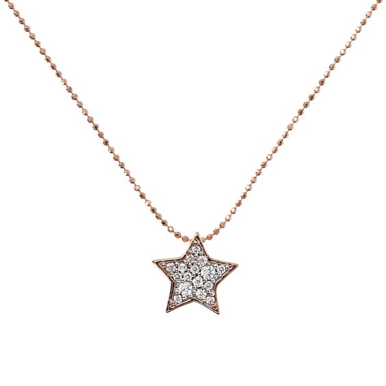 Collana cm 47 in Golden Rosè , lega brevettata placcata in oro rosa 18kt con stella e zirconi (pietre certificate). Certificato d'autenticità Bronzallure made in Italy .