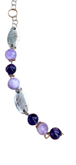 Collana in argento 925 con elementi ovali incisi e ametista diametro mm 18 lisce viola scuro e diametro mm 19 sfaccettate di colore viola più chiaro alternate