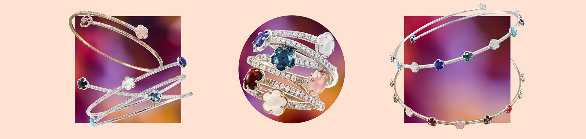 I gioielli di Pasquale Bruni sono in grado di unire il metallo, nobile e resistente, alle pietre preziose, ricche ed eleganti, creando uno stile unico e indipendente.